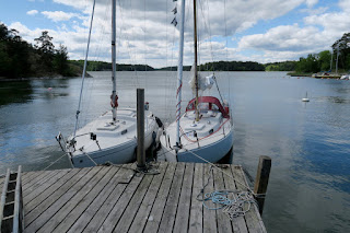 Vi satsade på att segla till Stora Nassa och vi kom dit! En underbar seglingssemester med vackert och varmt väder. Blåsigt var det men det gick fort att segla. Vi hade planerat att gå till Boda på lördagen men blev inblåsta på Stora Nassa. Gjorde ju inget vi hade mat, dryck, lä och fint väder. Vi startade tidigt på söndagen och gick mot norra Möja. Det blåste mer och mer och vi hade ca 11 m/sek som mest under överfarten. Till Boda i rekordfart. Bra vindriktning och bra tryck i vinden. Lade till i Boda bredvid Hasses Viggen. Hämtade upp svägerskan Gunilla, som aldrig satt sin fot på en segelbåt förut. Åt en god lunch. Satte kurs mot Åkersberga och hissade segel med ett rev intaget. Oj vad det blåste. Det krängde ordentligt och gick med en väldans fart. Tur att Gunilla är av den tuffare sortens människa, hon vart aldrig rädd. Som mest friskade det i i ca 14 m/sek i byarna. Vi mötte sjöräddningen och kustbevakningen med blåljus. En segelbåt modell mindre hade kapsejsat i de hårda vindbyarna. Vi kom i alla fall fram till TBK i Åkersberga helskinnade men med träningsvärk. Det är jobbigt att segla i så tuff vind och under sådande förhållanden.